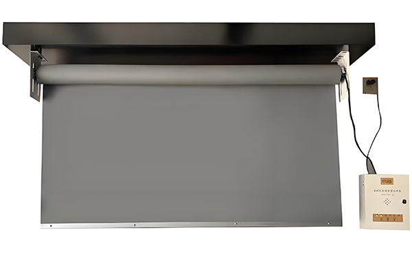连接电源线和控制线,将石河子挡烟垂壁安装在支架上,并用螺丝固定。